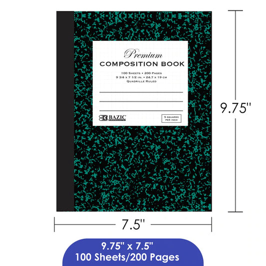 BAZIC 100 Ct. 5-1" Quad-Ruled Marble Composition Book Sold in 48 Units