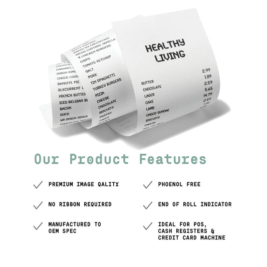 3 1/8" x 200' Phenol Free Thermal Paper Rolls (10 Rolls)