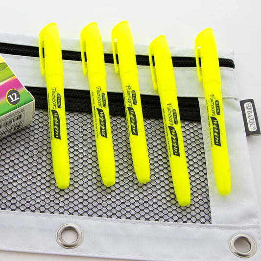 BAZIC Yellow Pen Style Fluorescent Highlighter w/ Pocket Clip (5/Pack) Sold in 24 Units