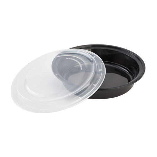 Karat 48oz PP Plastic Microwavable Round Food Containers & Lids - Black - 150 ct
