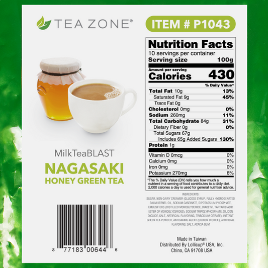 Tea Zone MilkTeaBLAST Nagasaki Savory Honey Green Tea Powder (2.2 lbs) Case Of 20