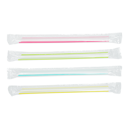 Karat 7.5'' Boba Straws (10mm) Poly Wrapped - Mixed Striped Colors - 2,000 ct, C9002s