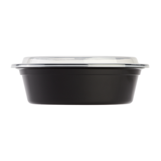 Karat 32oz PP Plastic Microwavable Round Food Containers & Lids - Black - 150 ct