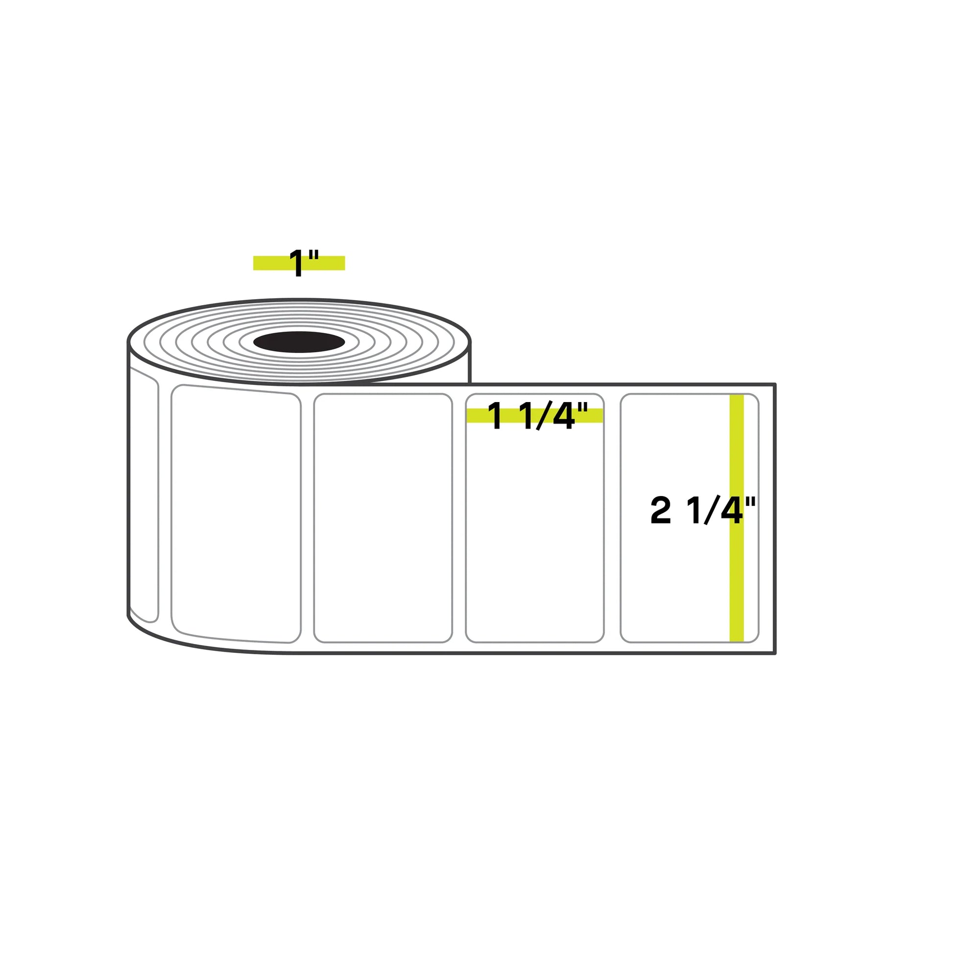 2 1/4" x 1 1/4", 1 inch Core, Direct Thermal Labels, 1000/Roll, 12 Rolls/Case