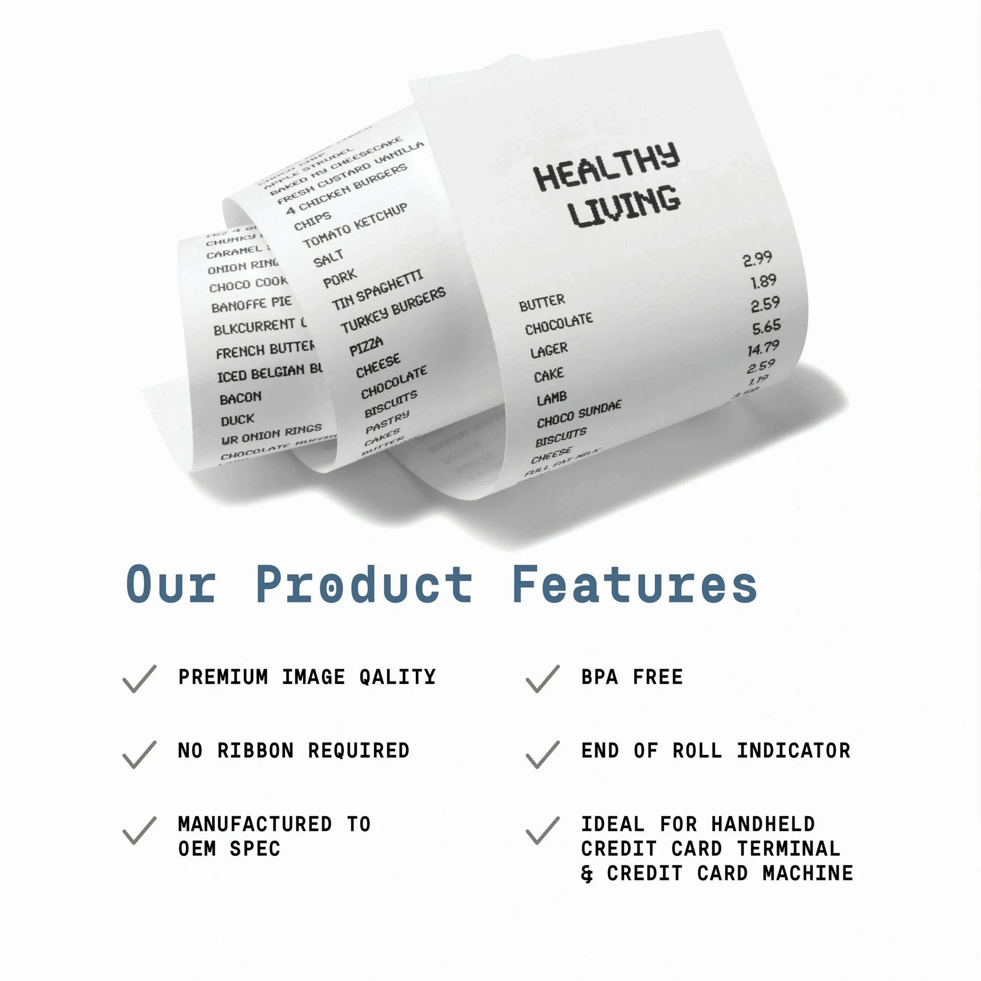 - 2 1/4" x 16' Thermal Paper Roll, 100 Rolls / Case, BPA Free, 48 GSM