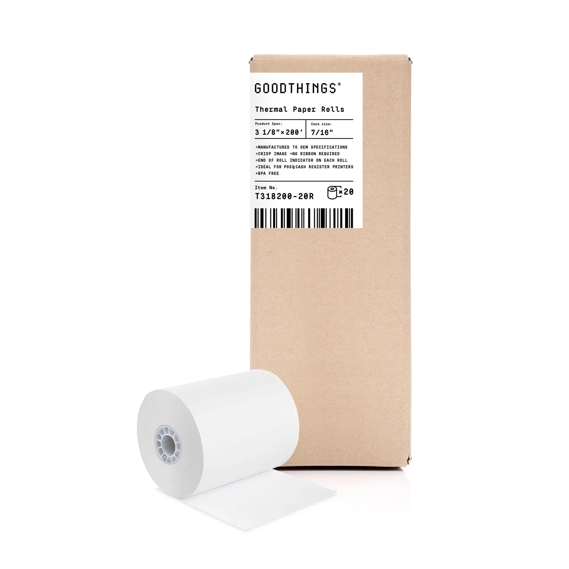 - 3 1/8" x 200' Thermal Paper Rolls, 20 Rolls (Economy Pack)