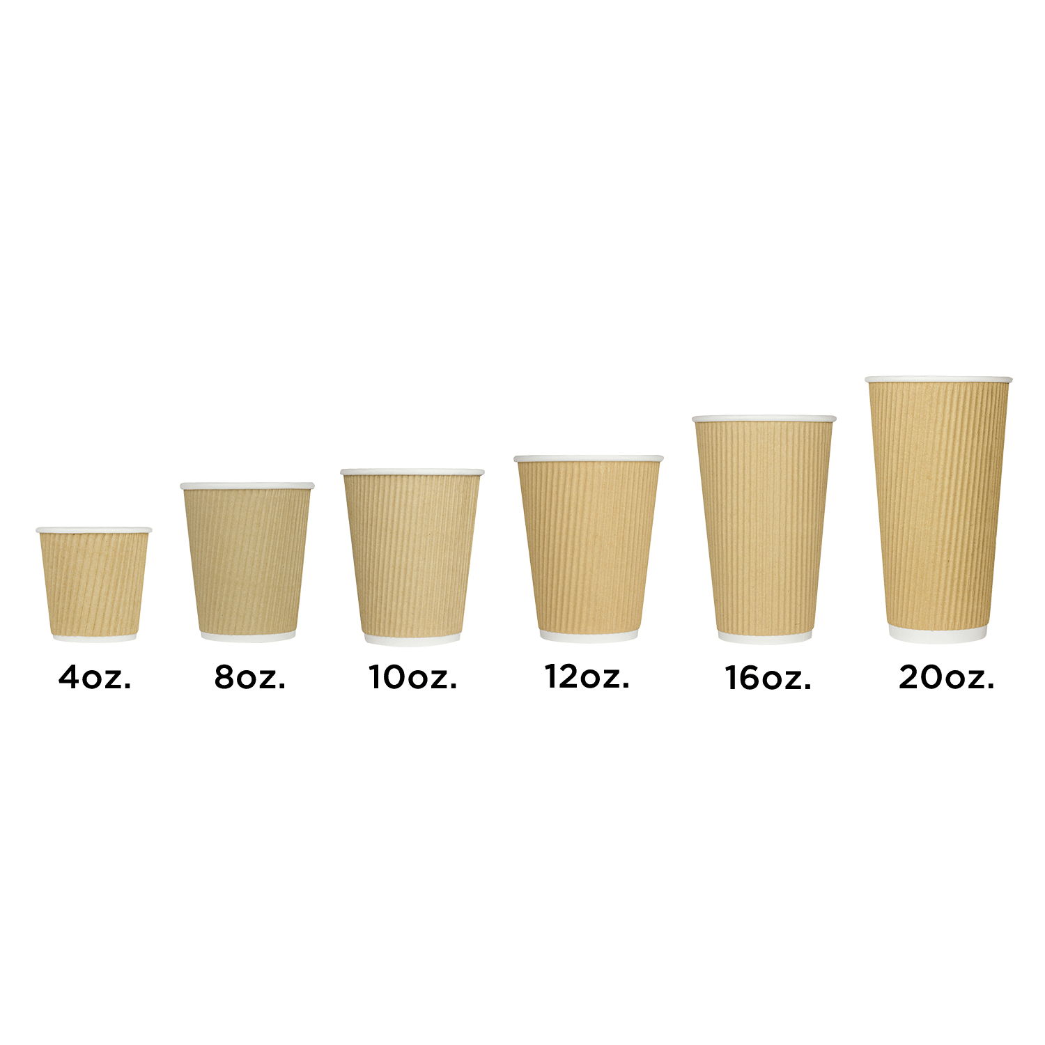 Designed specifically for use with hot beverages, Karat premium paper hot cups are great for restaurants and cafes serving coffee, tea, and any other hot beverage. Karat Ripple Paper Hot Cups are designed with an extra layer of rippled insulation to keep drinks warmer and eliminate the need for cup jackets while still providing superior grip. Double Poly lined to prevent leaking and for added resilience.