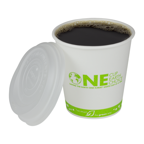 Karat Earth compostable paper hot cups are designed for hot beverages and feature our Karat Earth "One Cup, One Earth, One Choice" stock print. These hot cups feature a PLA lining which make them compostable and are BPI® certified compostable in industrial facilities.
