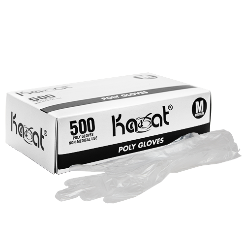 Karat Poly Gloves are your solution for sanitary food handling practices. The large gloves are powder-free and latex-free and are specifically designed for food preparation. Get your convenient disposable gloves in bulk or our smaller container size, whichever fits your needs the best.