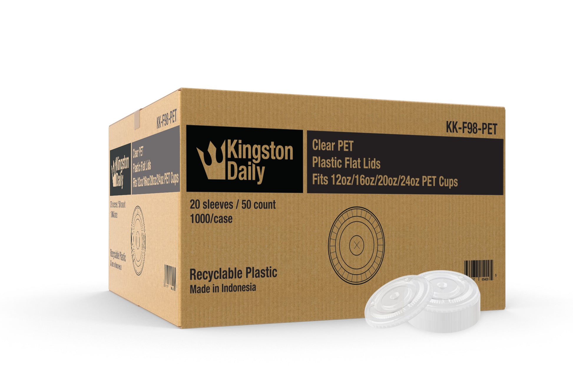Kingston Daily KK-F98-PET Clear PET Plastic Flat Lids (with Straw Hole) for 12oz/16oz/20oz/24oz Cups - 1000/case (20 sleeves / 50 count)