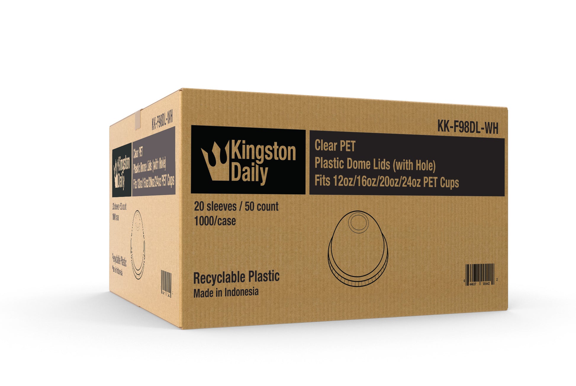 Kingston Daily KK-F98DL-WH Clear PET Plastic Dome Lids (with Hole) for 12oz/16oz/20oz/24oz Cups - 1000/case (20 sleeves / 50 count)