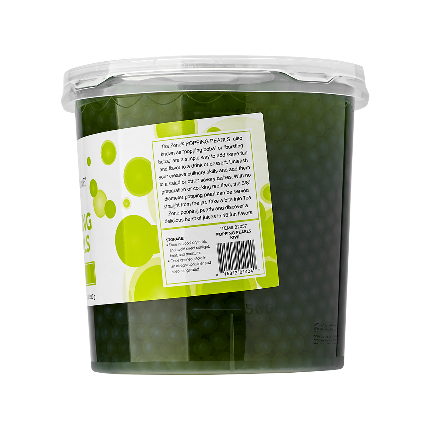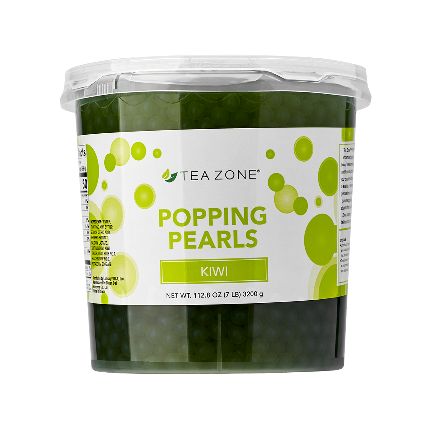 - The Tea Zone popping boba is rich in fruit extracts. Their gummy texture makes them unique and colorful. Each kiwi boba has a bright color that adds life to your drinks and desserts.