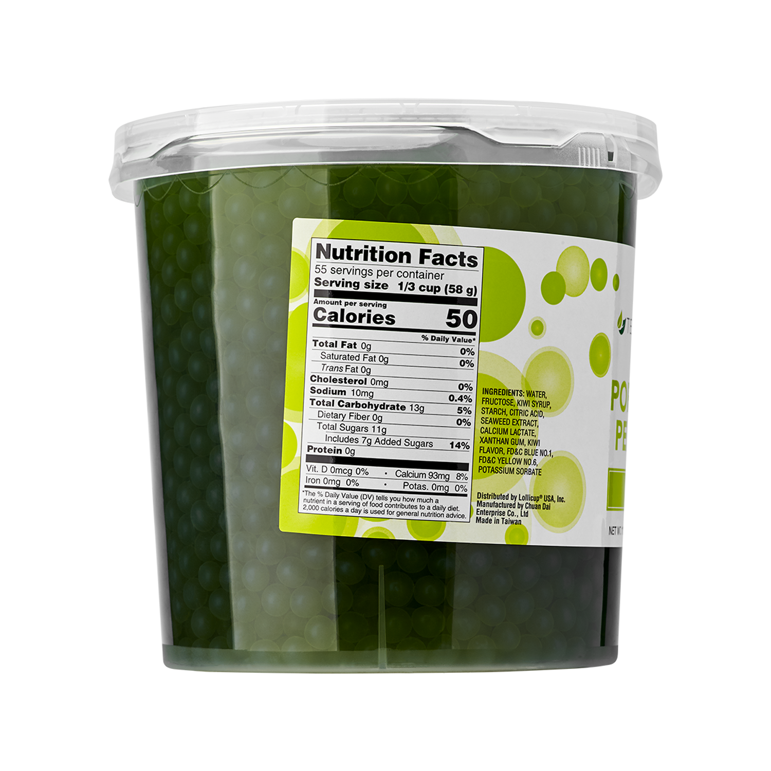 Also, our Kiwi popping pearls will help transform your drink or dessert to look and feel more creative and trendy.
