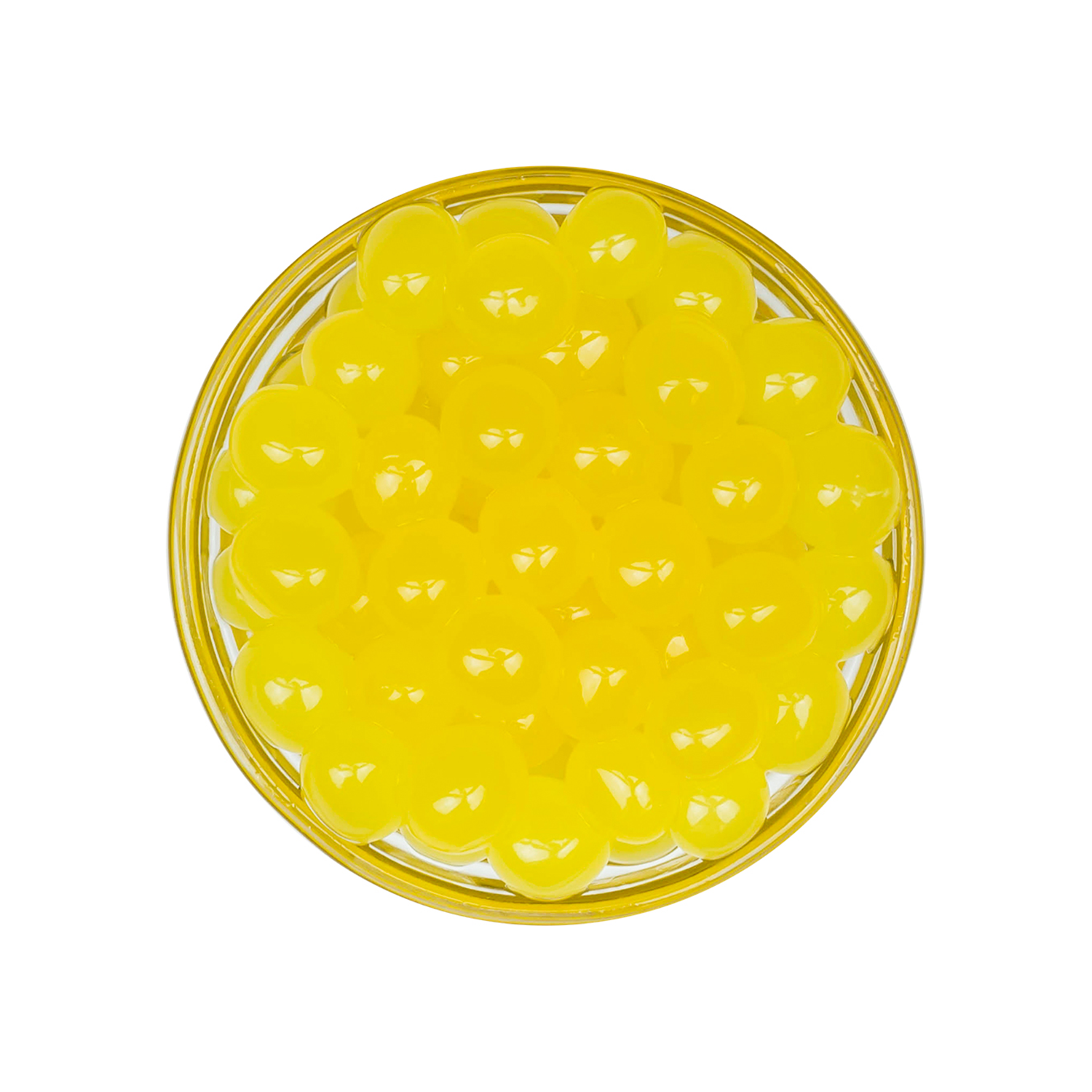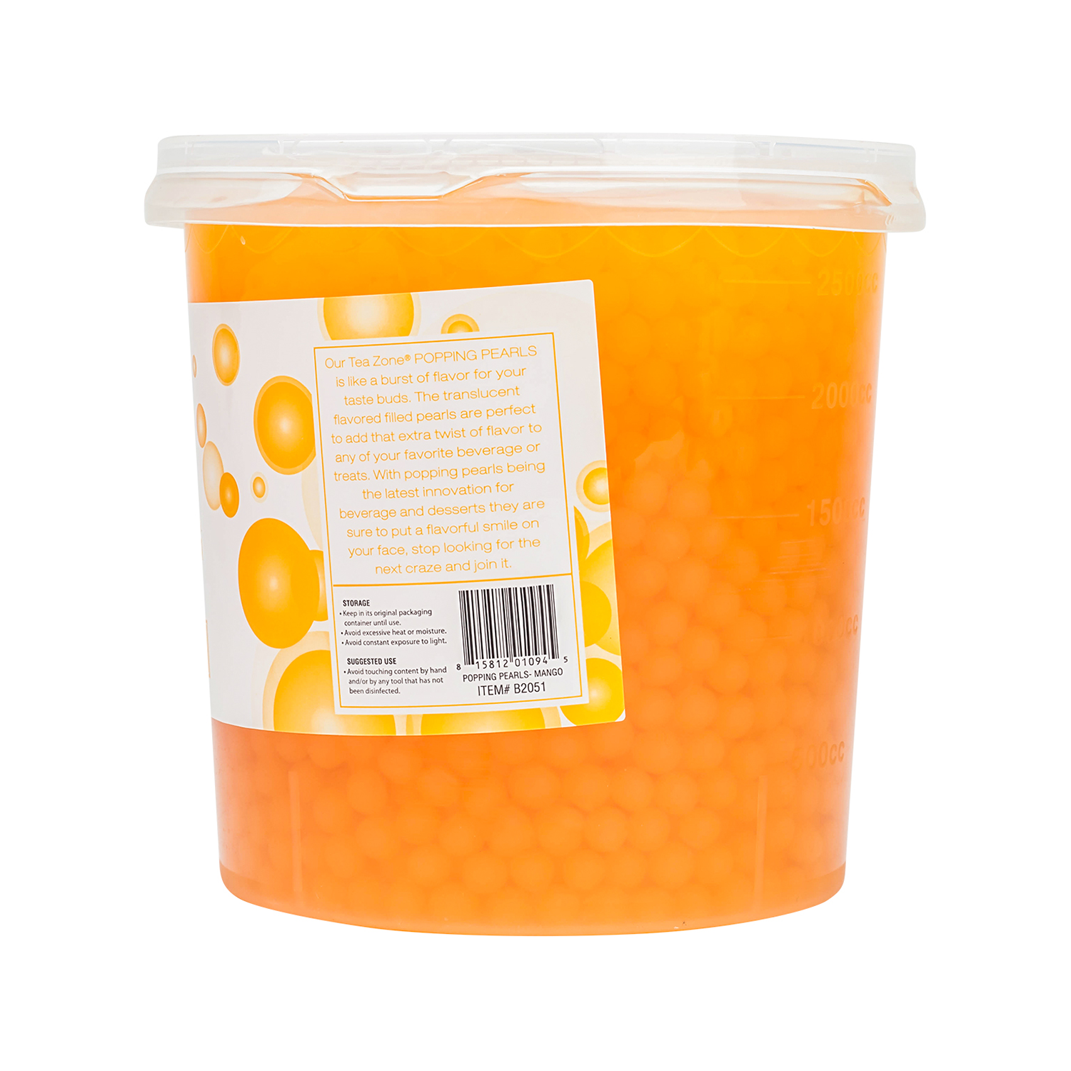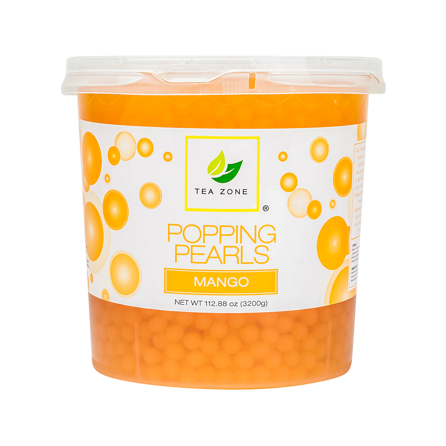 Tea Zone Mango Popping Pearls are juice pearls filled with a juicy Mango flavor. They are a great addition to iced teas, slushies, smoothies, and more!