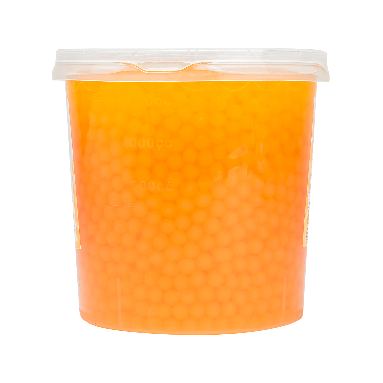 Tea Zone Mango Popping Pearls, also known as Bursting Boba, are juicy balls of Mango flavor that pops in your mouth when consumed. The outer layer of the popping boba is made from seaweed extract, which makes this topping caffeine-free and vegetarian style. Adding these popping pearls as a special garnish to your beverage or dessert will definitely make them look more visually appealing to your customers.