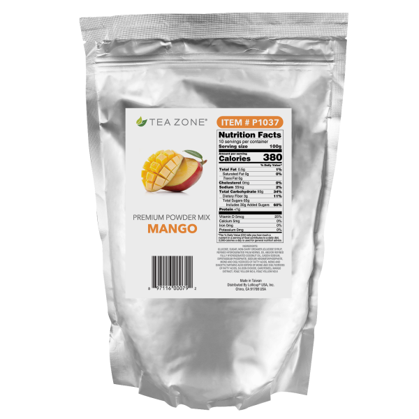 Tea Zone Mango Powder is a premium powder mix great for making smoothies, milk teas, flavored milk, and various blended drinks. With many natural flavors to select from, Tea Zone premium powders are securely sealed and designed to be resealable after opening to maintain the quality of the powder. To ensure uncompromised and sanitary usage, powders should be stored in a vacuum sealed power container and always use a dry, clean powder scoop. Packaging design may differ from the product photo.