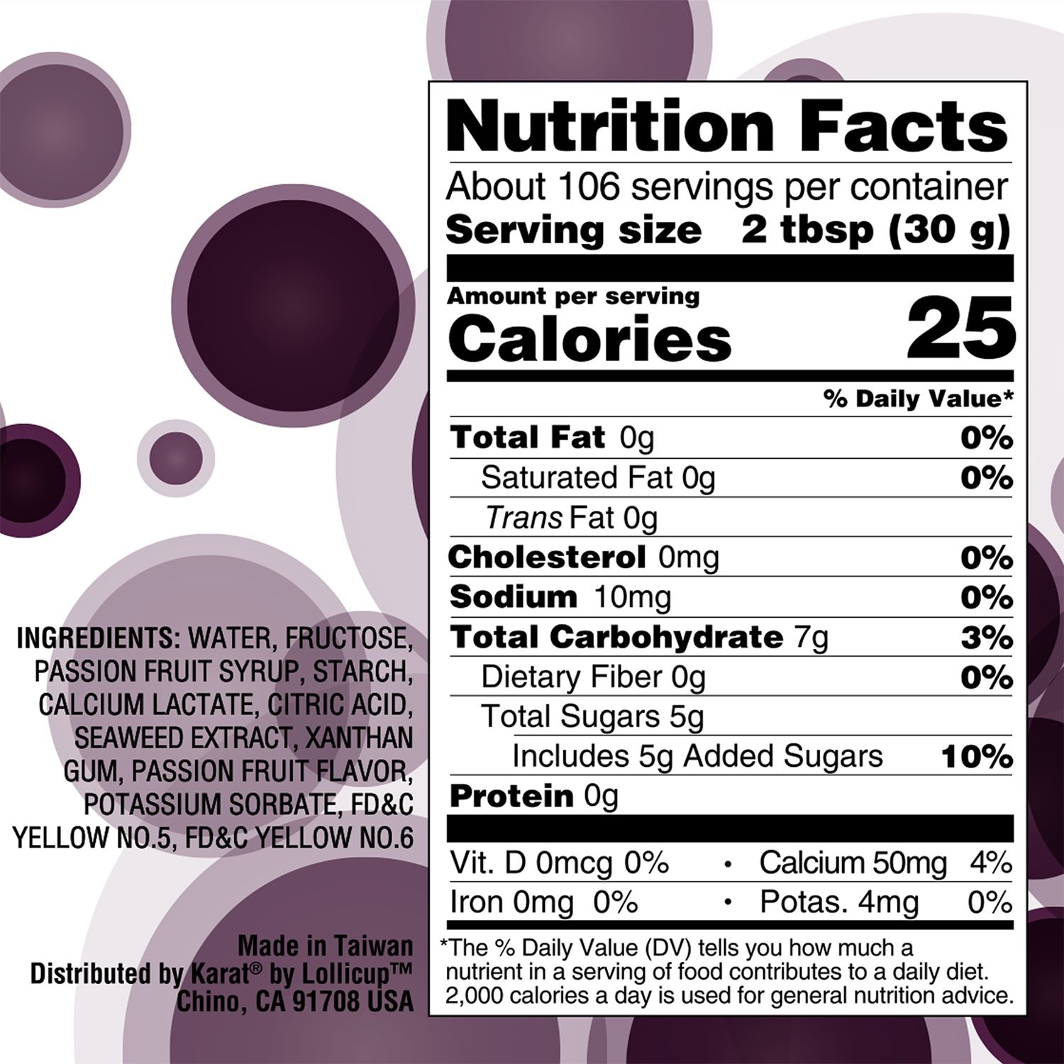 Water, Sugar, Passion Fruit Syrup, Starch, Calcium Lactate, Seaweed Extract, Citric Acid, Flavor, FD&C Yellow No.6, Potassium Sorbate