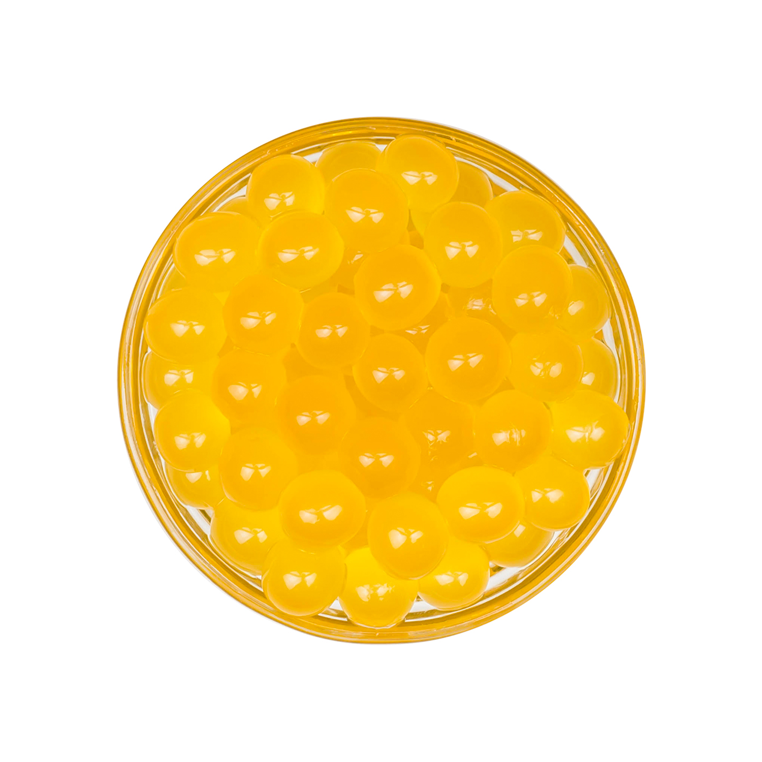 Tea Zone Mango Popping Pearls are vibrant boba-like pearls that give a satisfying burst of fruit flavor when bitten into. The bright yellow color of boba jelly balls makes your drink recipes look even more delicious. The bursting boba is rich in fruit extracts and their gummy texture makes them a unique add-on to any cold beverage.