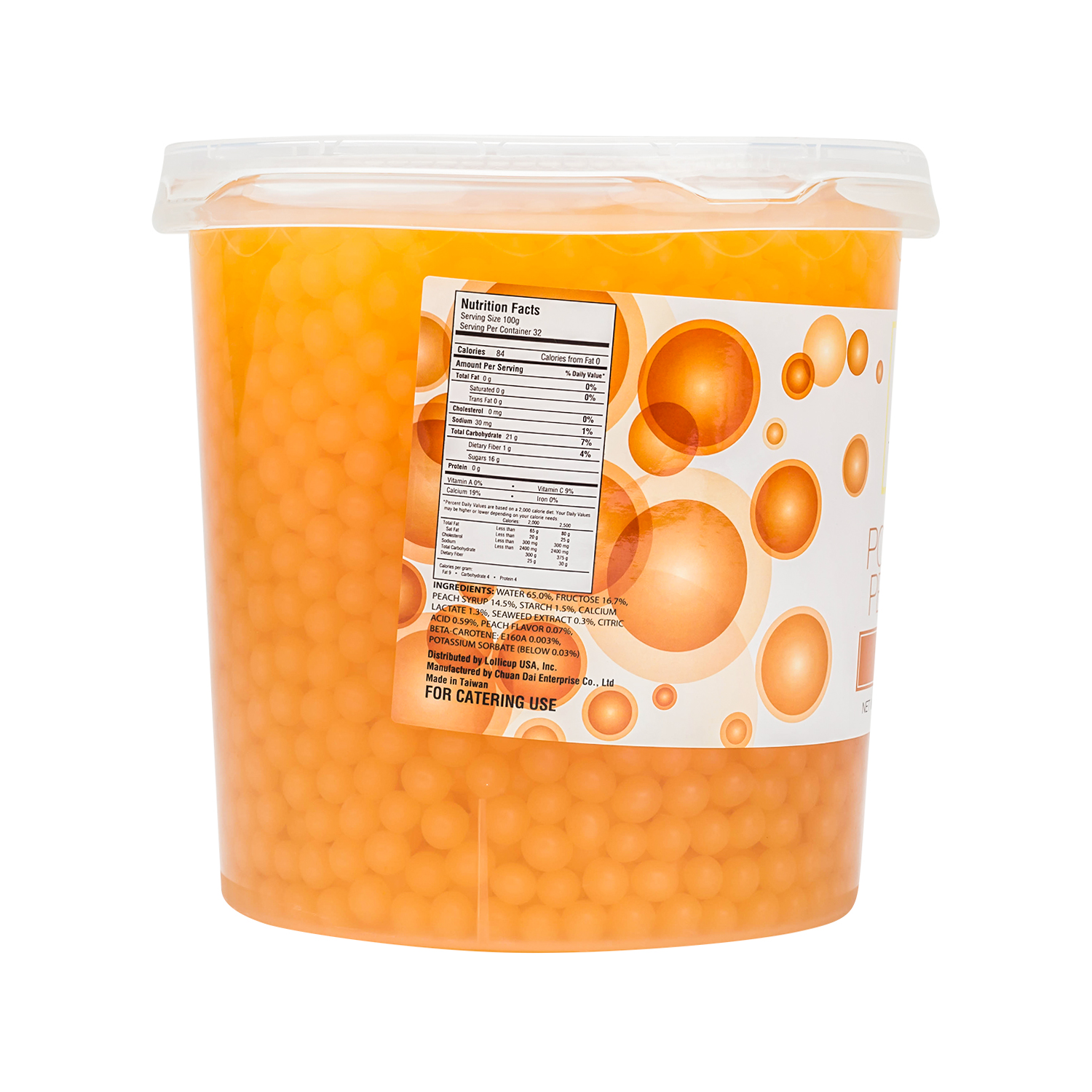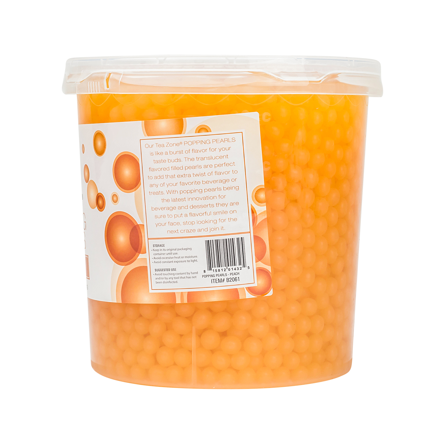 - The Tea Zone popping boba is rich in fruit extracts. Their gummy texture makes them unique and colorful. Each peach boba has a bright color that adds life to your drinks and desserts.