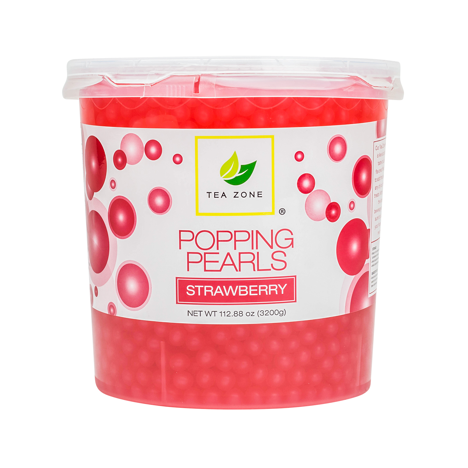 Popping pearls, a.k.a. "popping boba" or "bursting boba", are a beverage sensation trending in Europe and Asia. Popping pearls are a simple and easy addition to quick-service restaurants because there are no preparing or cooking required. Serve these popping boba straight from the jar! Tea Zone Strawberry Popping Pearls are the most popular flavors in the US market. Each popping pearl is about 3/8" in diameter and bursts with flavorful fruit juices when bitten into. Packaging design may differ from product photos.