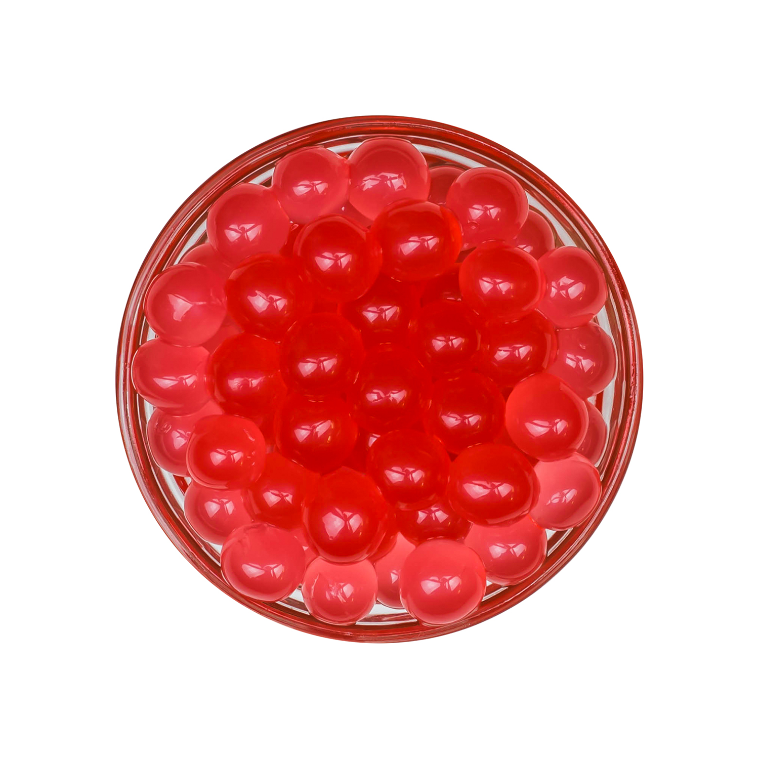 Strawberry popping pearls, also known as popping boba, are liquid-filled balls with the essence and goodness of strawberry with a juicy burst of flavor. A little smaller in size than the regular tapioca boba, popping pearls leave your customer’s taste buds satisfied with a gush of fruit flavor. The vibrant dark red color of the boba jelly balls makes your recipe look delicious. Our popping pearls will also help your food look creative and trendy that will lure customers in and keep them coming back for more.