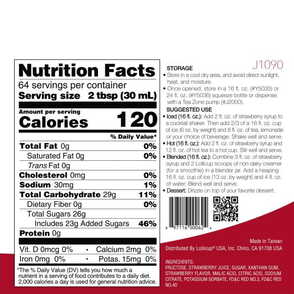 - 1 Tbsp (1/2 oz) Tea Zone Strawberry Syrup