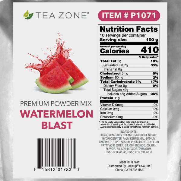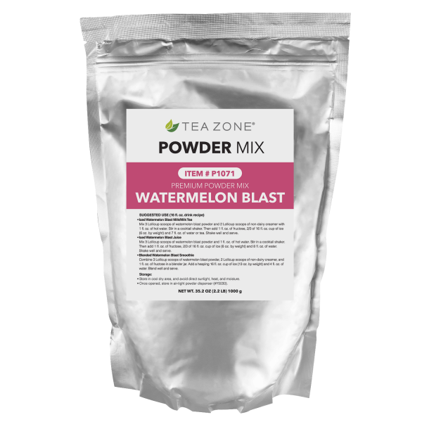 Enjoy a bold refreshing watermelon fruit flavor with the Tea Zone Watermelon BLAST Powder drink mix. It’s easy to create bright delicious beverages with just a few scoops of powder and your imagination. Blend with water, milk tea, oat milk, lemonade, and more! The fun red color brings life to drink menus and provides a social media-worthy appeal.